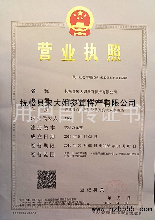 榮譽(yù)資質(zhì) 撫松縣宋大姐參茸特產(chǎn)有限公司