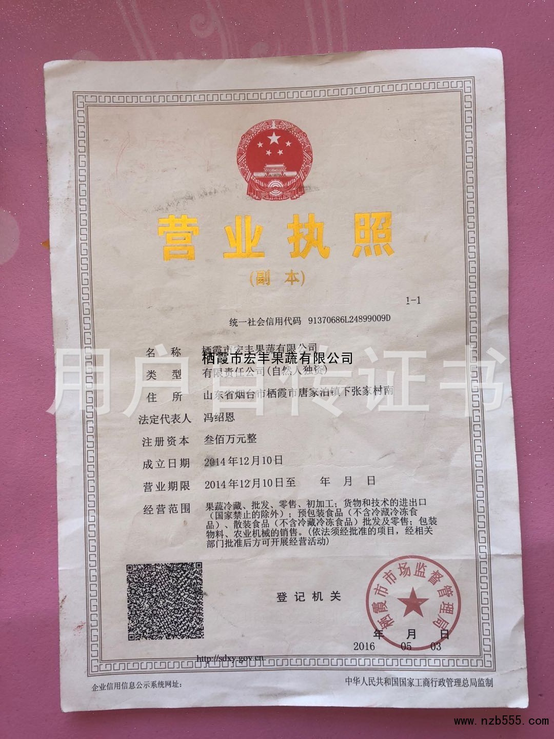 | 發(fā)證機(jī)構(gòu): | 棲霞市市場監(jiān)督管理局 | 發(fā)證時(shí)間 : | 2016-05-03 |
