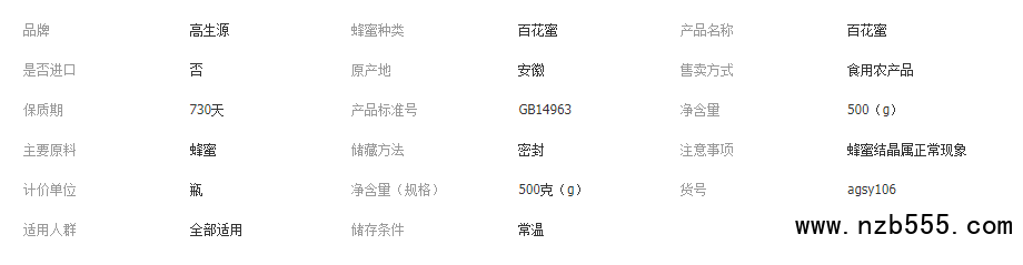 高生源源頭產品百花蜜500克支持量大從優