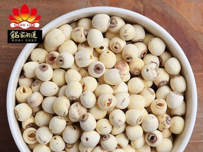 過塞 磨蓮子顆粒近圓柱形,表面光滑,乳白色,胚芽端及柱面留有紫褐色環和色斑,色澤基本一致,有蓮子固有的清香,無異味