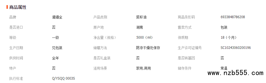 道道全壓榨菜籽油5L