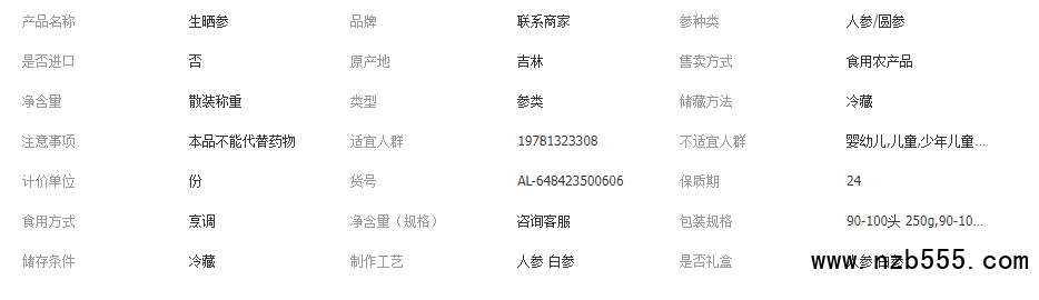 白參長白山生曬參全須