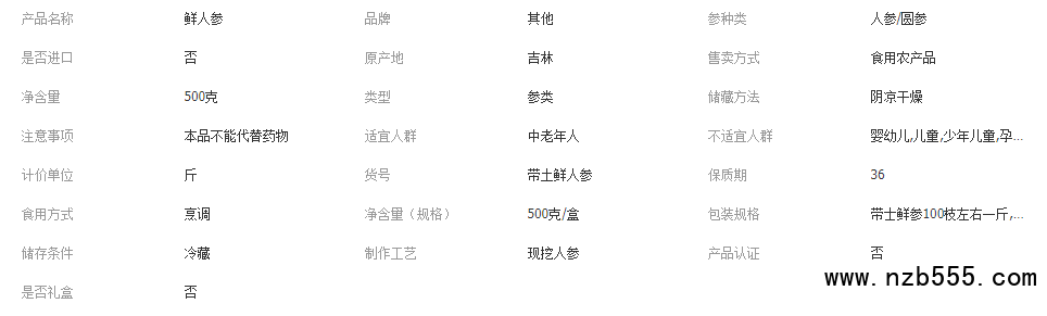 長白山新鮮人參500g裝