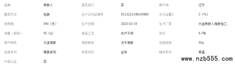 養(yǎng)參人大連純淡干海參干貨批發(fā) 干海參水產(chǎn)遼參工廠發(fā)貨50g