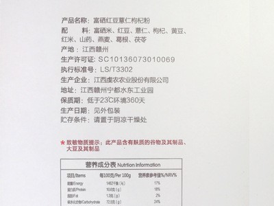 配料:黑芝麻、提子干、紅豆、淮山、蕎麥、紅棗、南瓜子、白砂糖、乳粉